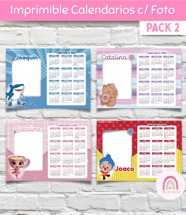 Cada calendario viene en formato PNG de alta resolución, para que puedas personalizar fácilmente con nombre y foto en el programa de diseño que prefieras: Canva, Illustrator, Photoshop o PowerPoint.