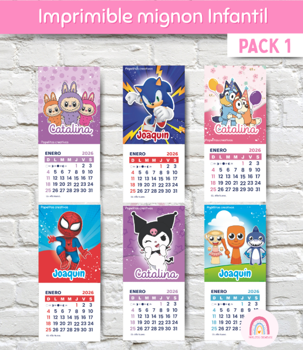 🗓️ Calendarios Mignon Infantiles 2026 – Imprimibles