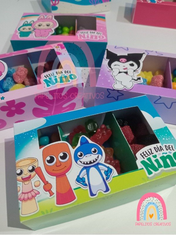 Fácil de armar: la caramelera se imprime en 1 hoja A4 y los divisores en media hoja.