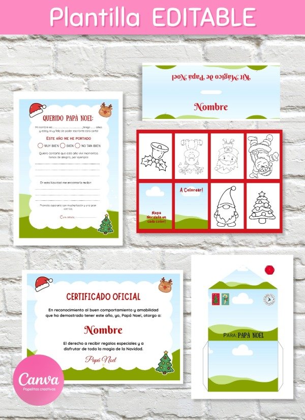 KIT CARTA A PAPÁ NOEL – EDITABLE EN CANVA