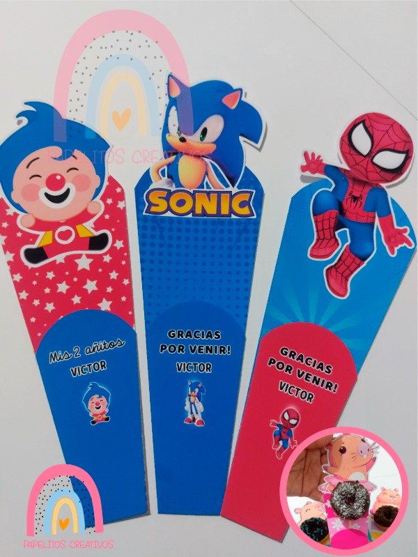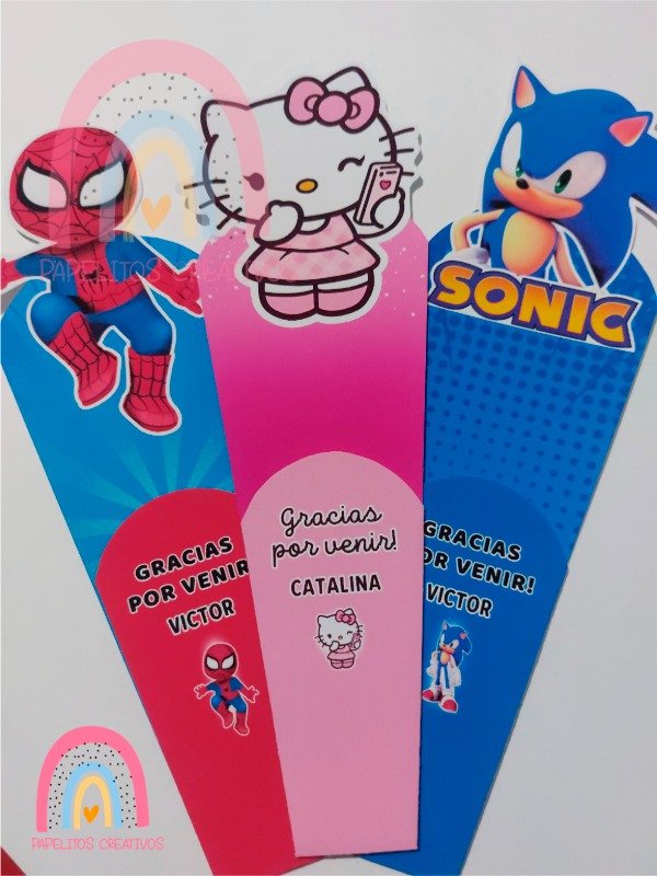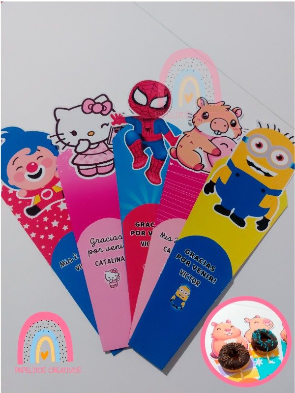 Incluyen diseños de tus personajes favoritos: Spider-Man, Stitch, Abejita de plim plim, Minions, My Melody, Kuromi, Hello Kitty, Capibara, Mario Bros, Sonic, La Bubu, Mikey Crack, Plim Plim y Bluey